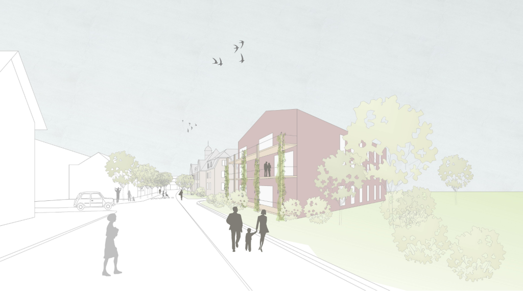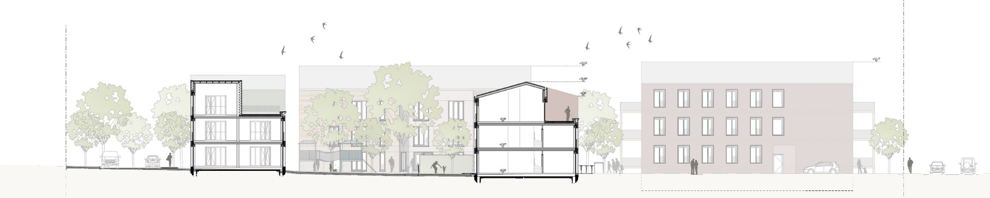 Die städtebauliche Komposition sieht eine lebendige Fassade mit ruhigem Wohnraum vor.